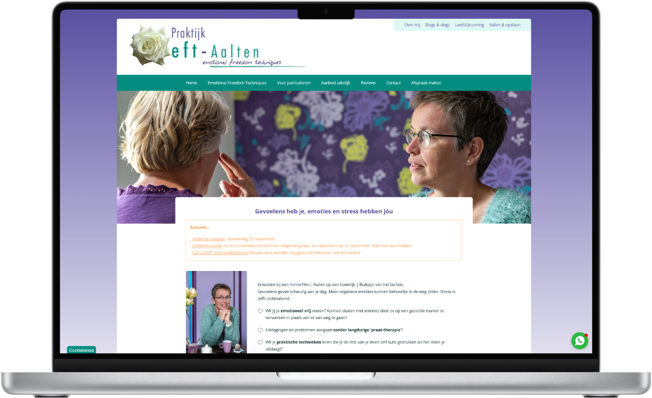 Voor Praktijk EFT in Aalten hebben we een website ontwikkeld die de veilige en vertrouwelijke sfeer van de praktijk online weerspiegelt.