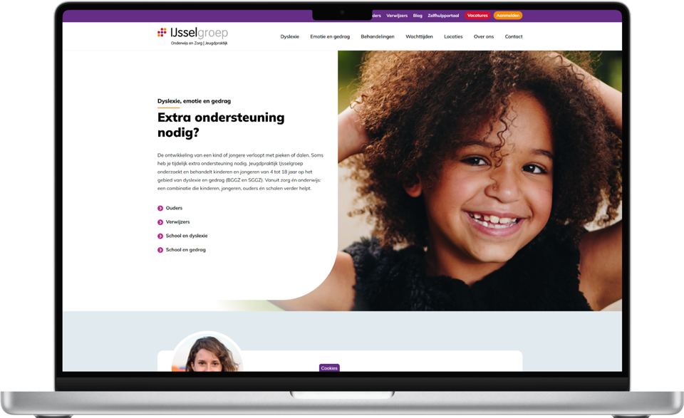 Voor IJsselgroep in Apeldoorn, al meer dan 10 jaar een gewaardeerde partner voor diverse projecten, hebben we een nieuwe, gerichte Jeugdpraktijk website ontwikkeld.