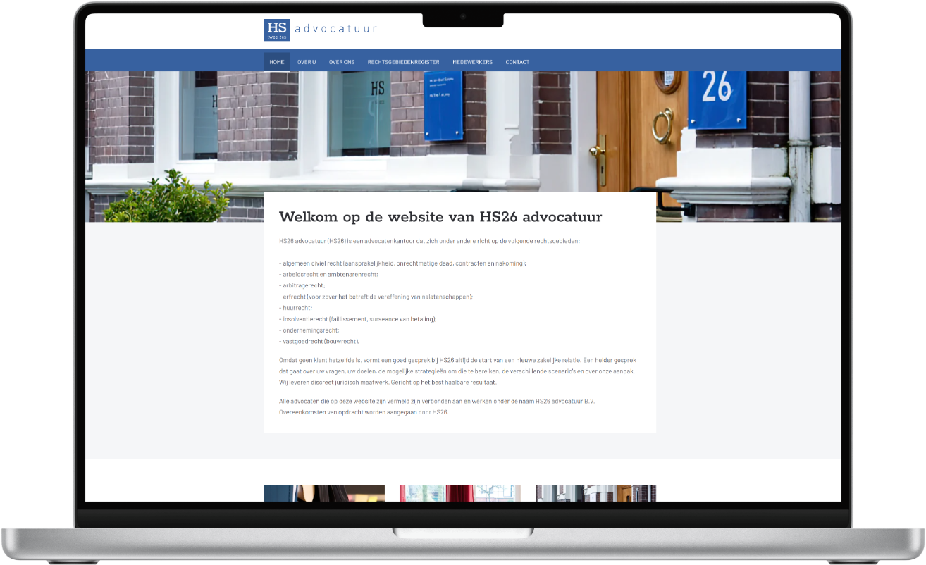 Voor het moderne advocatenkantoor HS26 in Groningen was een online aanwezigheid nodig die hun kernwaarden uitstraalt: professioneel, direct en discreet.