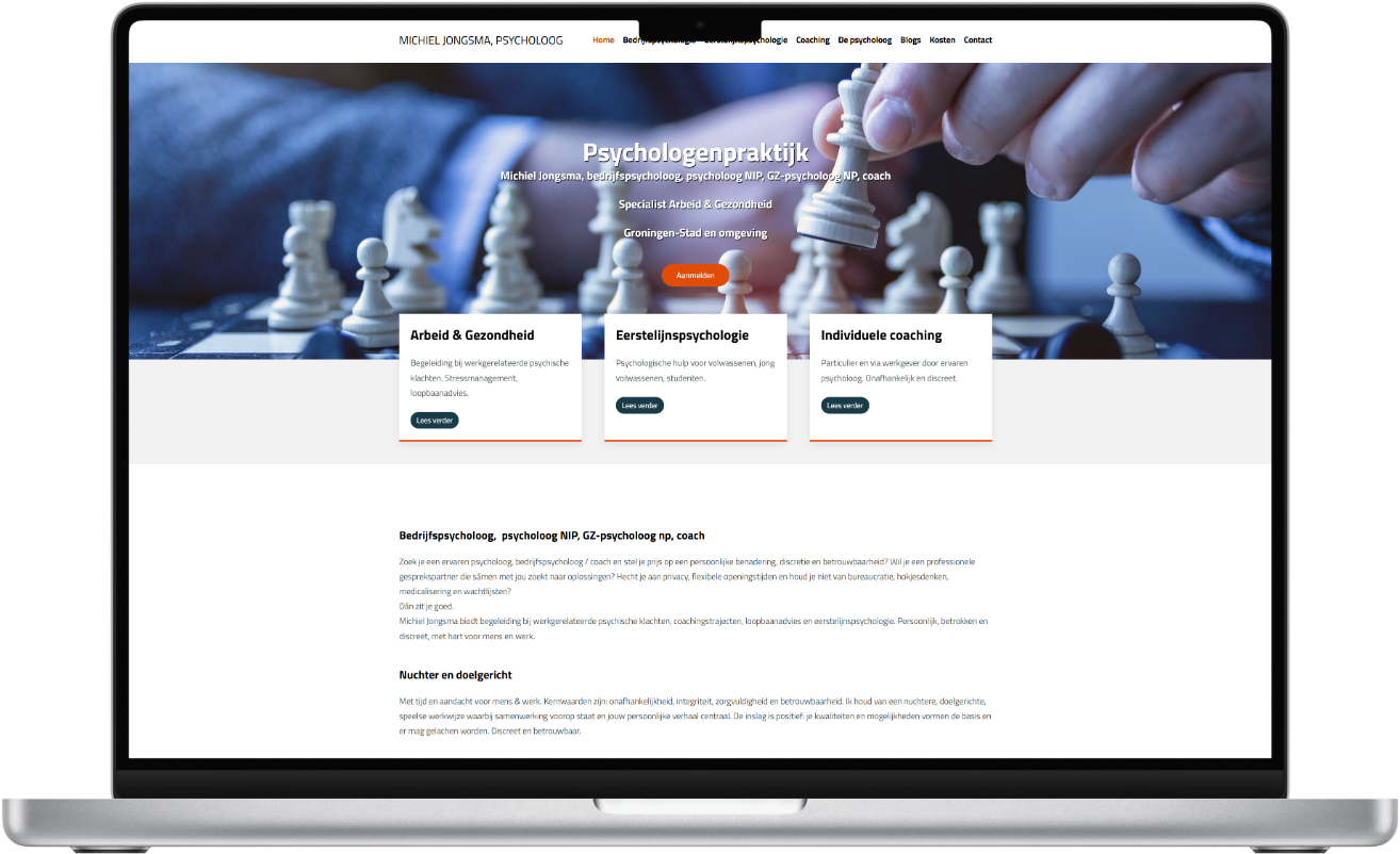 Voor Psychologenpraktijk Michiel Jongsma in Groningen was het essentieel om een online omgeving te creëren die rust, veiligheid en professionaliteit uitstraalt.