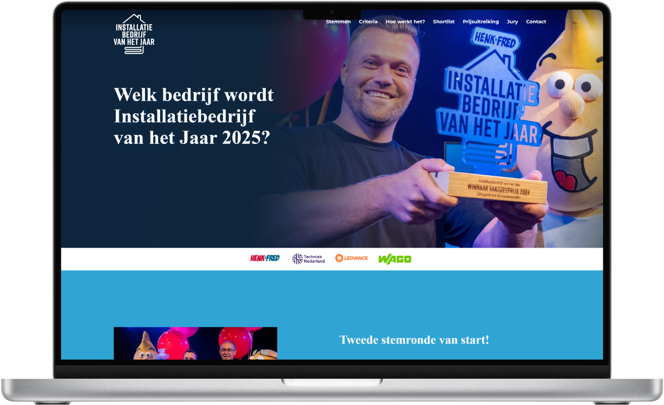 In opdracht van Media Vakman in Deventer hebben we de officiële website ontworpen en gebouwd voor de verkiezing 'Installatiebedrijf van het Jaar'.