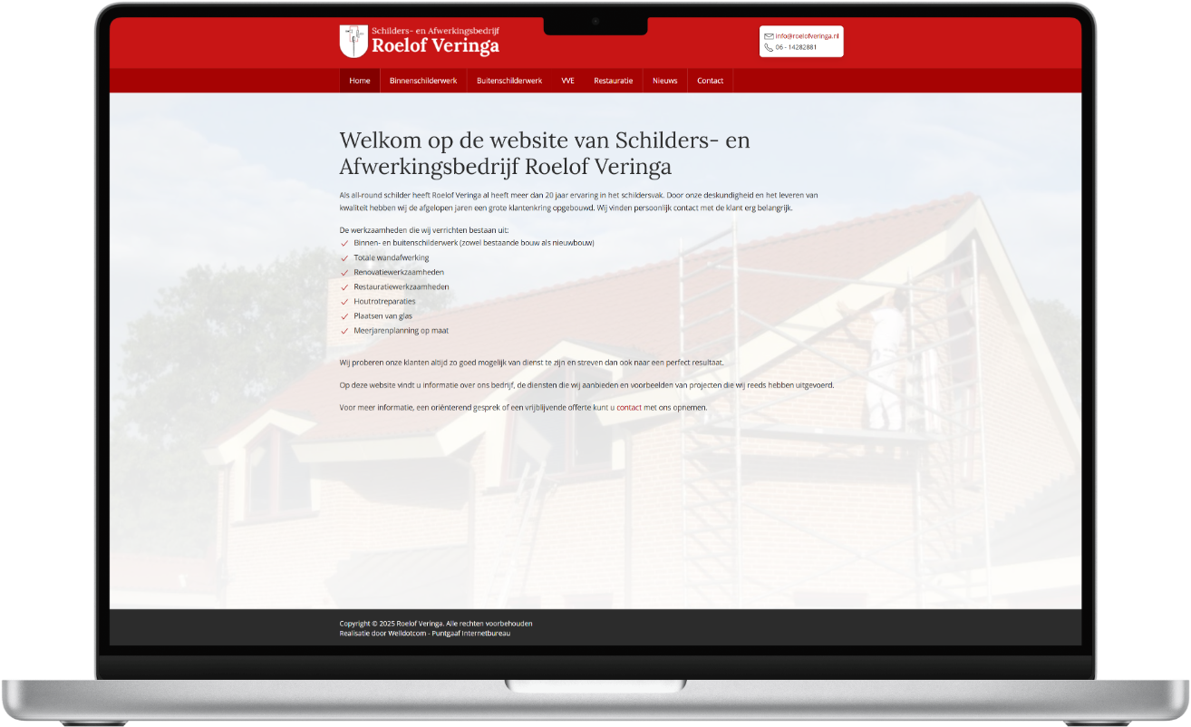 Voor Schilders- en Afwerkingsbedrijf Roelof Veringa uit 't Harde hebben we een website ontwikkeld die hun vakmanschap en oog voor detail online weerspiegelt.