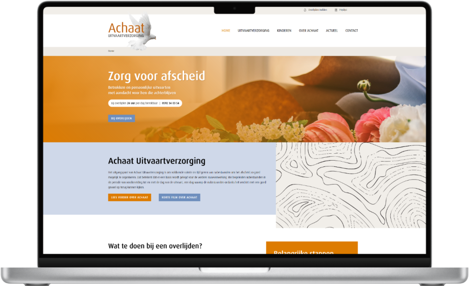 Al meer dan 11 jaar zijn wij de trotse digitale partner voor Achaat Uitvaartverzorging in Assen. In die jaren hebben we diverse keren de website mogen vernieuwen, altijd met als doel een online omgeving te creëren die warmte, rust en helderheid uitstraalt.