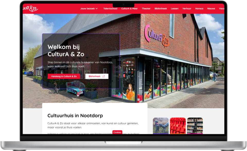 Voor CulturA & Zo in Nootdorp hebben we een levendige en functionele website ontwikkeld die dient als het centrale informatie- en servicepunt voor al hun culturele activiteiten.