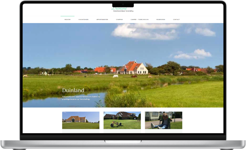 Voor Duinland Vakantieverblijven op Terschelling hebben we een sfeervolle en functionele website ontwikkeld die gasten uitnodigt om hun vakantie te boeken.