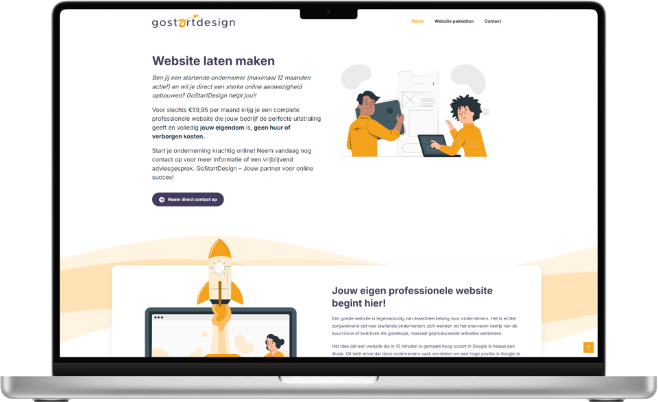 Voor Go Start Design, een bureau dat zich specifiek richt op het online helpen van startende ondernemers, hebben we de volledige visuele en technische basis gelegd.