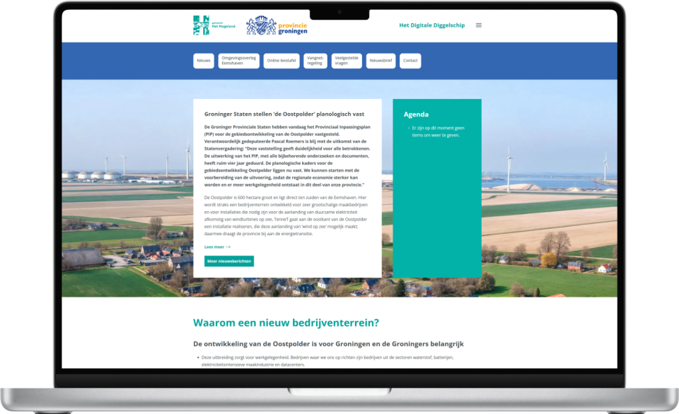 In opdracht van BügelHajema Adviseurs hebben we 'Het Digitale Diggelschip' gerealiseerd, een gezamenlijk online platform voor de gemeente Het Hogeland en de provincie Groningen.