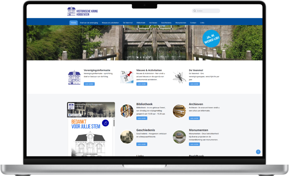Voor de Historische Kring Hoogeveen hebben we een website ontwikkeld die fungeert als hun digitale archief en communicatiekanaal.