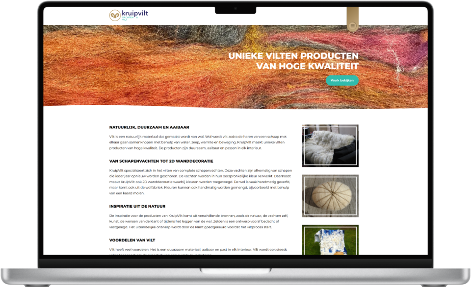 Voor de ambachtelijke vilt-studio Kruipvilt uit Rolde hebben we een complete online vernieuwingsslag gemaakt, beginnend bij de kern van het merk.