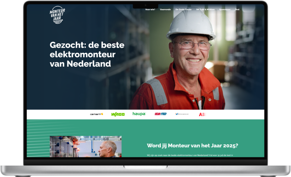 In opdracht van onze vaste partner Media Vakman (bekend van 'Henk & Fred') in Deventer, hebben we de officiële website ontwikkeld voor de prestigieuze verkiezing 'Monteur van het Jaar'.