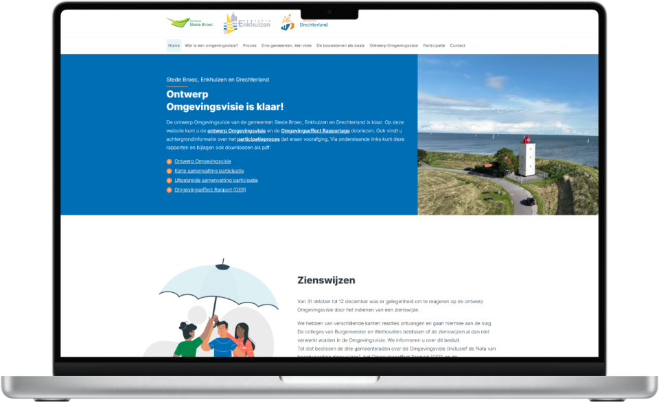 In opdracht van onze partner BügelHajema Adviseurs hebben we het gezamenlijke online platform ontwikkeld voor de omgevingsvisie van de SED-gemeenten: Stede Broec, Enkhuizen en Drechterland.