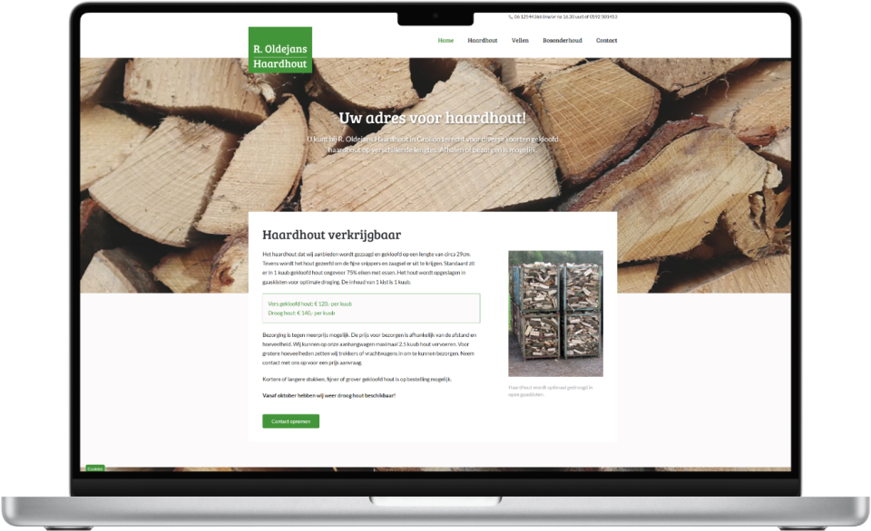 Voor R. Oldejans Haardhout in Grolloo hebben we een 'to the point' website ontwikkeld die direct ter zake komt.