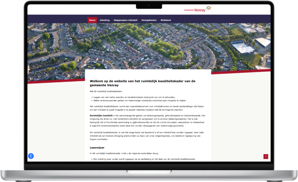 In opdracht van onze vaste partner BügelHajema Adviseurs hebben we het Ruimtelijk Kwaliteitskader voor de gemeente Venray omgezet in een heldere en overzichtelijke website.