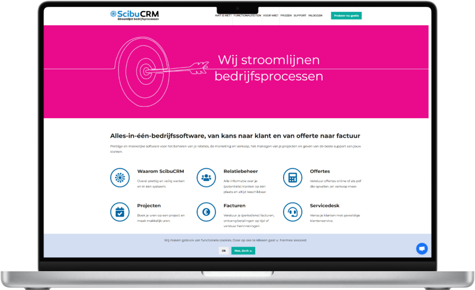 In opdracht van onze partner Qubics in Haarlem hebben wij de volledige technische realisatie verzorgd voor de nieuwe website van softwarebedrijf Scibu CRM.